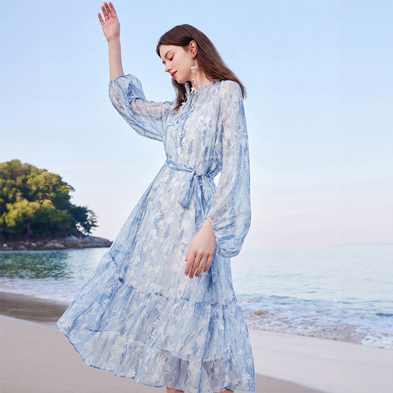 秋水伊人雪纺碎花连衣裙2025早秋新款 独特超好看高级感裙子 女法式