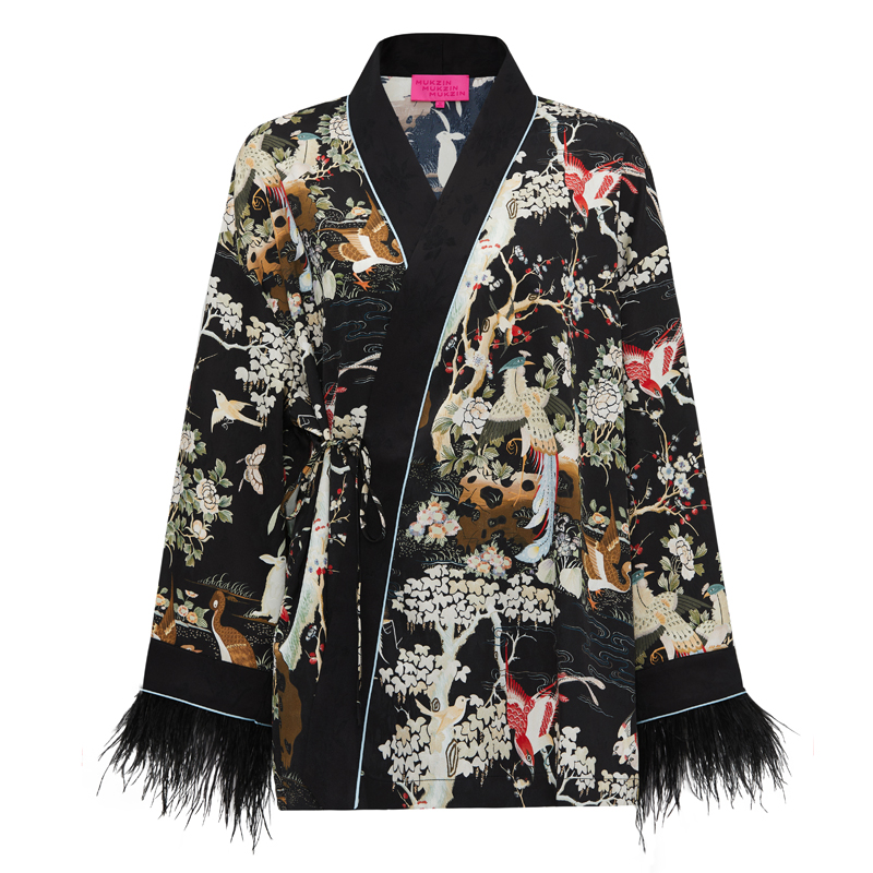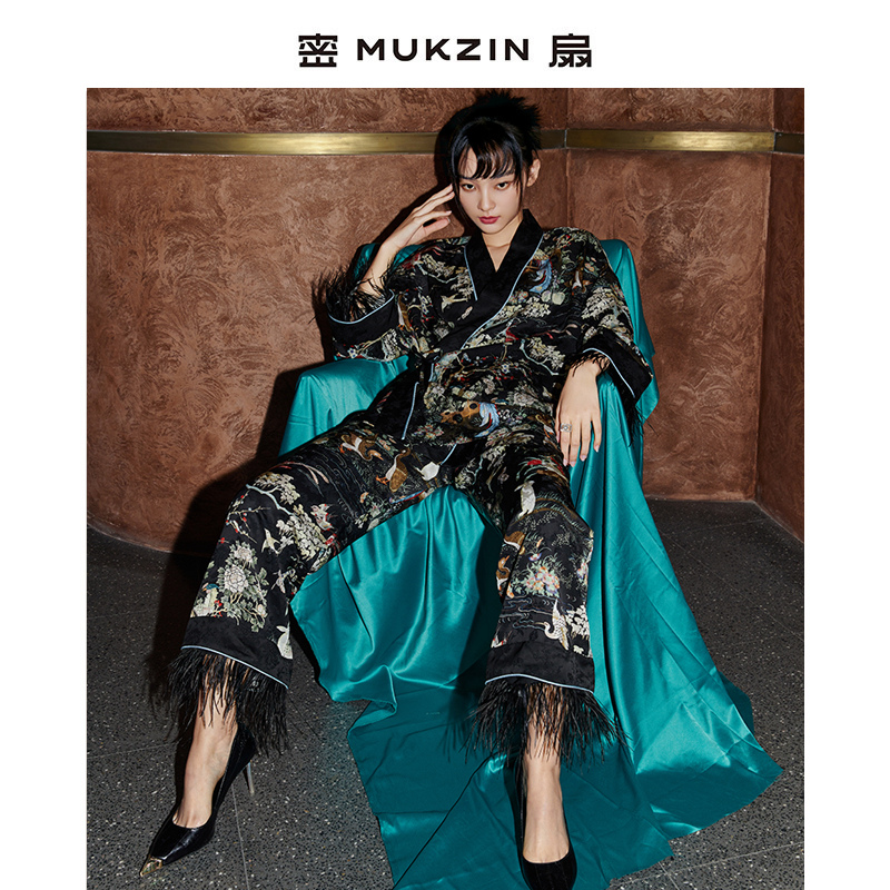 家居服睡衣上衣女 密扇百鸟朝凤印花设计感气质新中式 司南同款