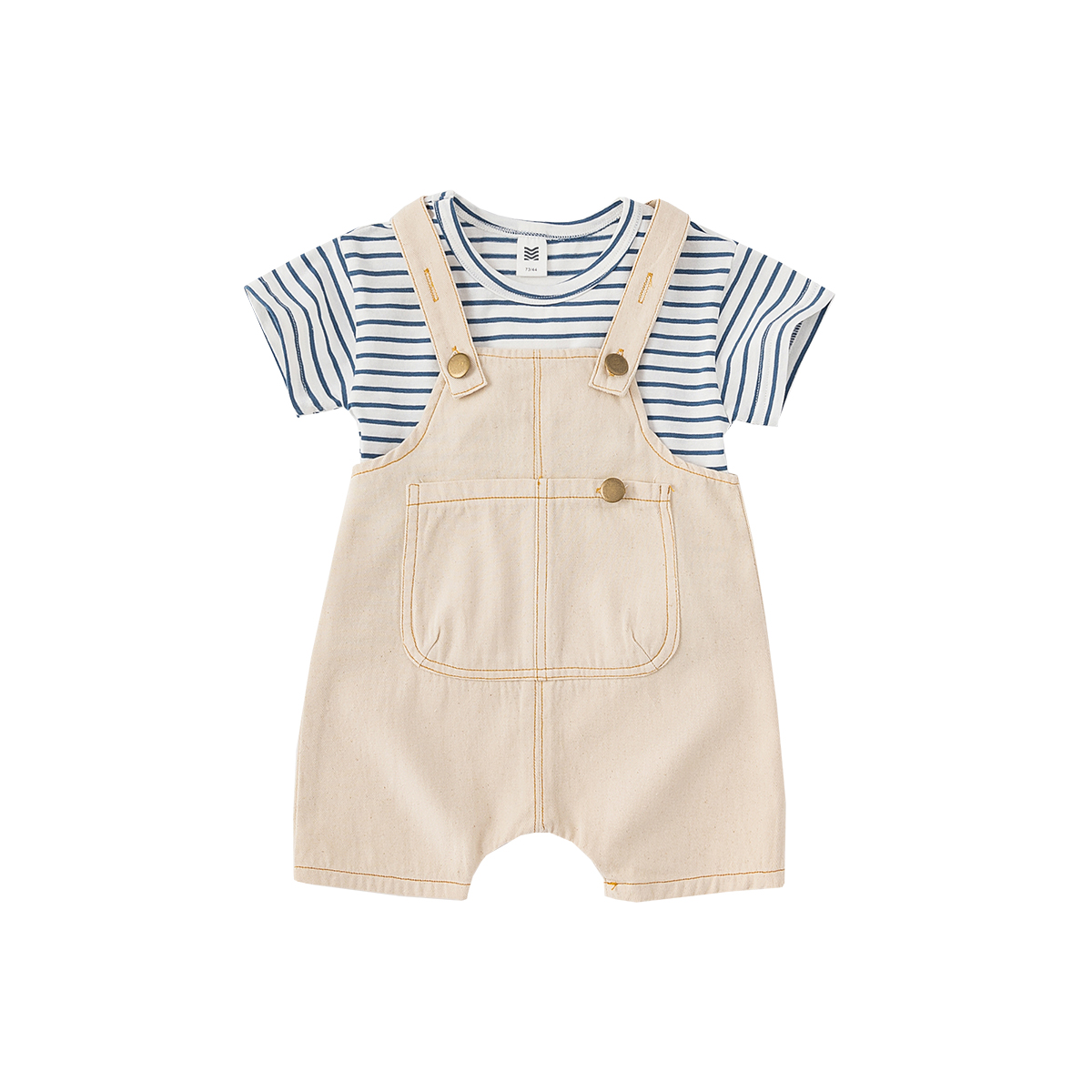 夏装 婴儿条纹T恤两件套1一3岁男小童韩版 潮 套装 贝贝城宝宝背带裤