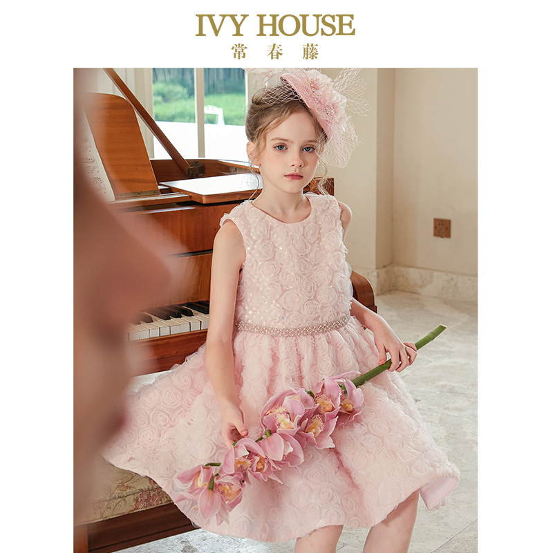 法式 女童宝宝夏新款 玫瑰背心礼服裙连衣裙 HOUSE常春藤儿童装 IVY