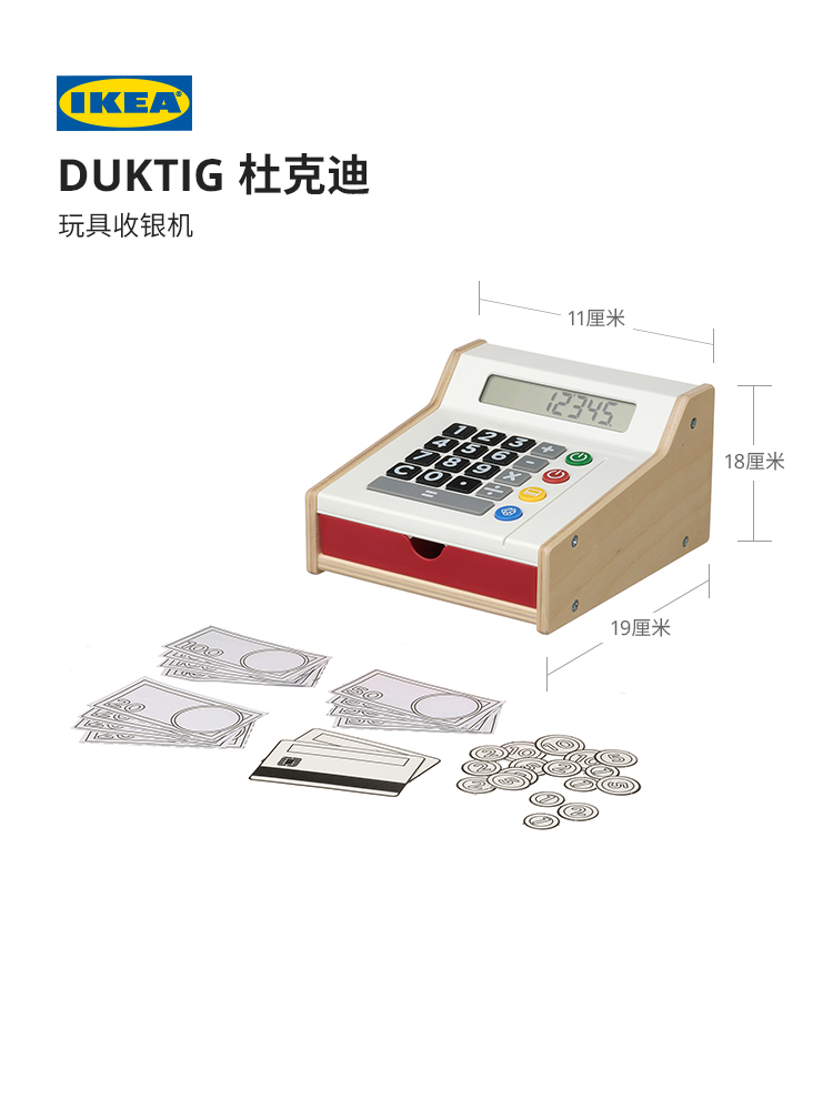 IKEA宜家DUKTIG杜克迪玩具收银机收银台过家家益智玩具男孩女孩