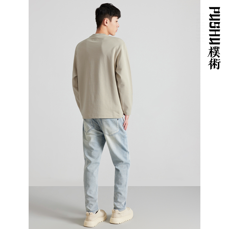 微弹圆领长袖 朴术男装 棉质纯色百搭亲肤内搭打底衫 新款 T恤 春秋季