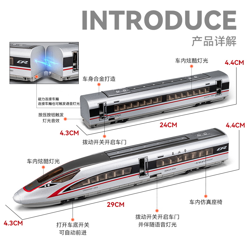 中国复兴号高铁动车组玩具轻轨道火车合金模型地铁列车玩具车男孩