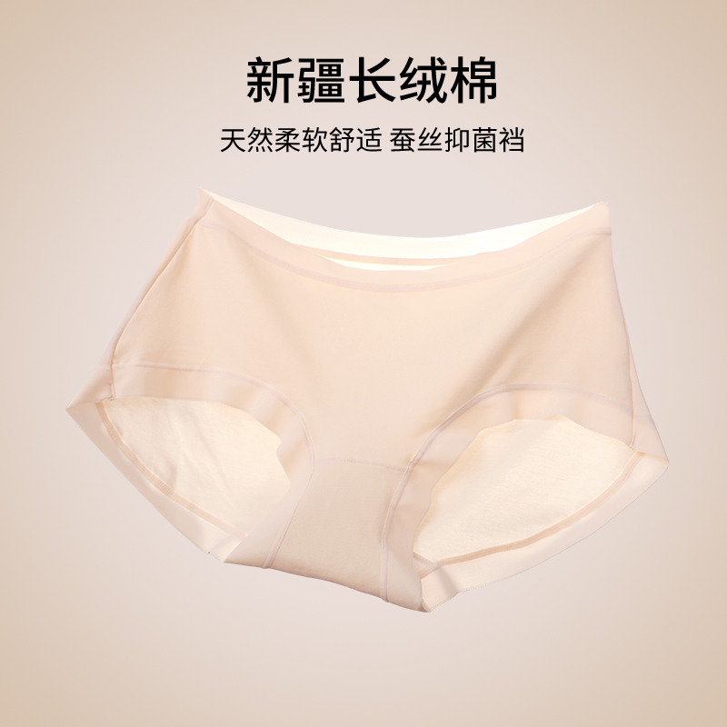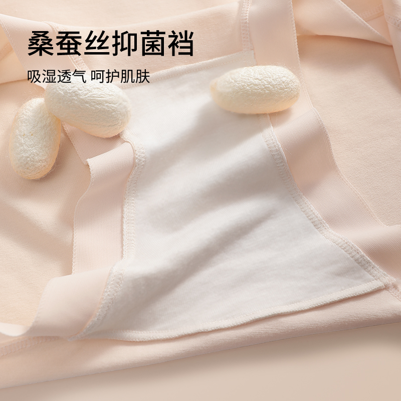 有棵树纯棉内裤 女生桑蚕丝抗菌裆无痕中腰透气舒适2025新三角短裤