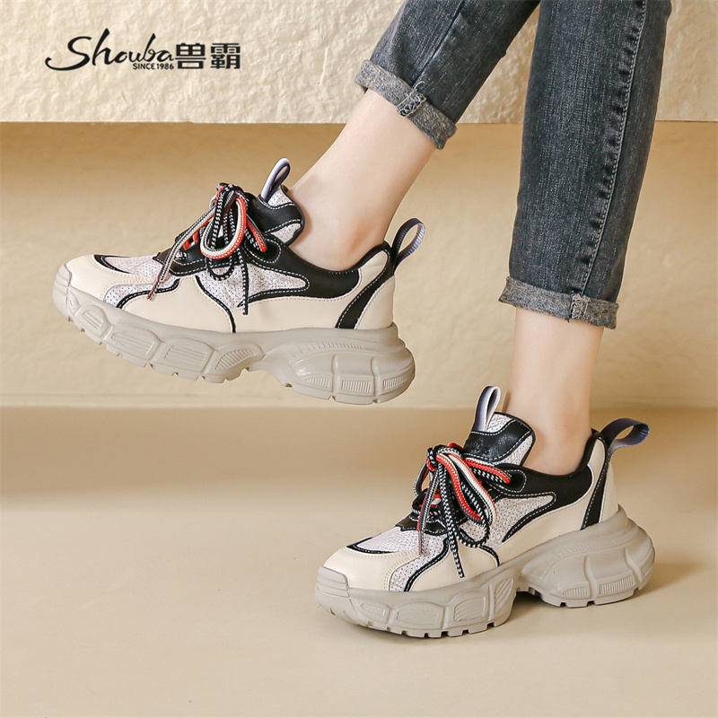 透气休闲运动潮鞋 兽霸真皮厚底老爹鞋 松糕底女鞋 新款 女2025春季