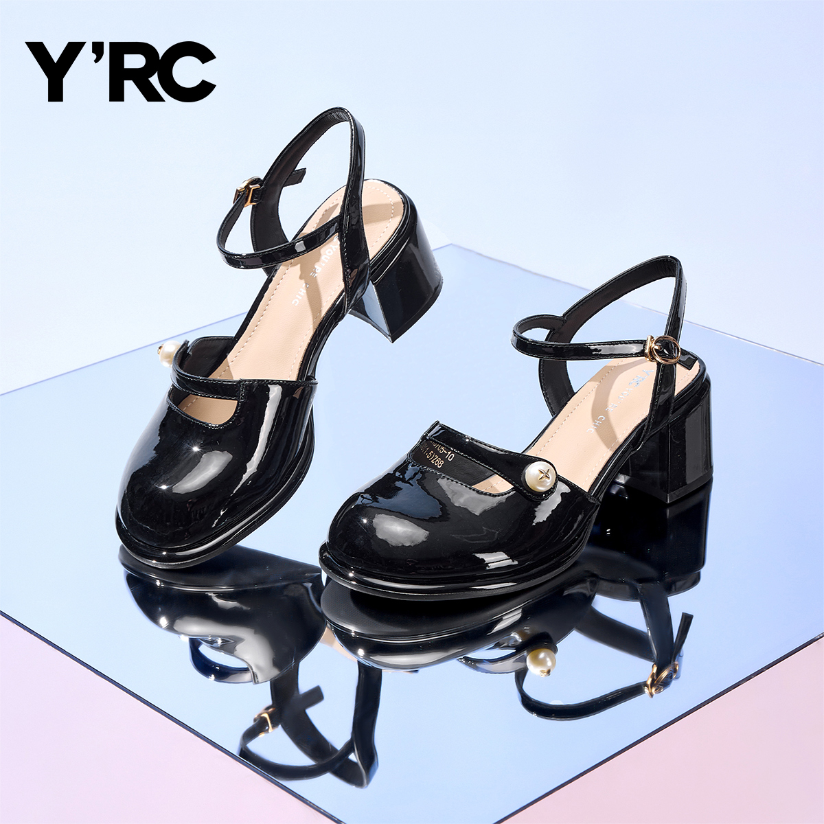 玛丽珍高跟鞋 黑色复古一字带粗跟凉鞋 女新款 单鞋 夏季 YRC法式