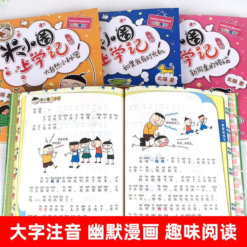 小学生课外阅读书籍儿童读物故事书 12周岁带拼音班主任推荐 新版 漫画经典 第二辑 北猫系列正版 米小圈上学记二年级全套4本注音版