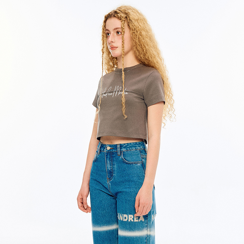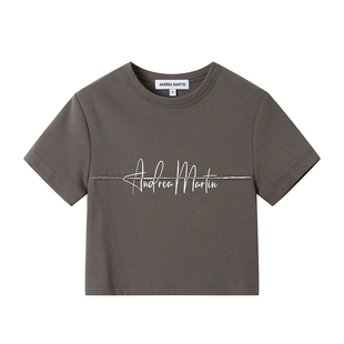 短款 小修身 圆领T恤 MARTIN秋破缝毛边设计logo刺绣短袖 ANDREA
