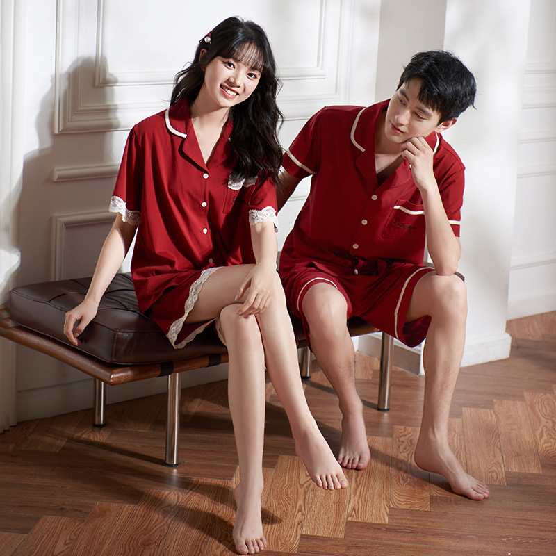 马克公主情侣睡衣女夏短袖 纯棉新婚结婚喜庆本命年红色家居服套装