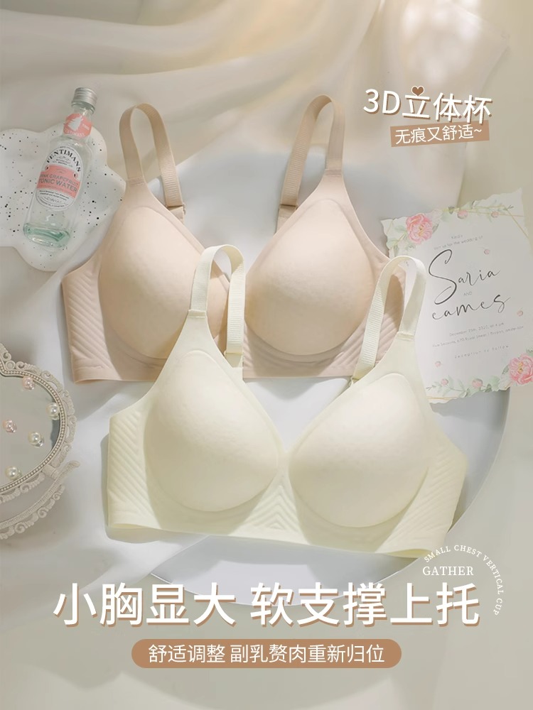 凉感无痕内衣女聚拢小胸夏季 胸罩软支撑收副乳防下垂冰丝文胸 薄款
