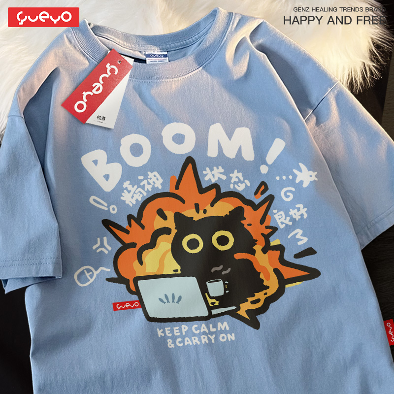 t恤男休闲宽松夏季 原创设计黑猫纯棉短袖 透气 精神状态良好 悦游