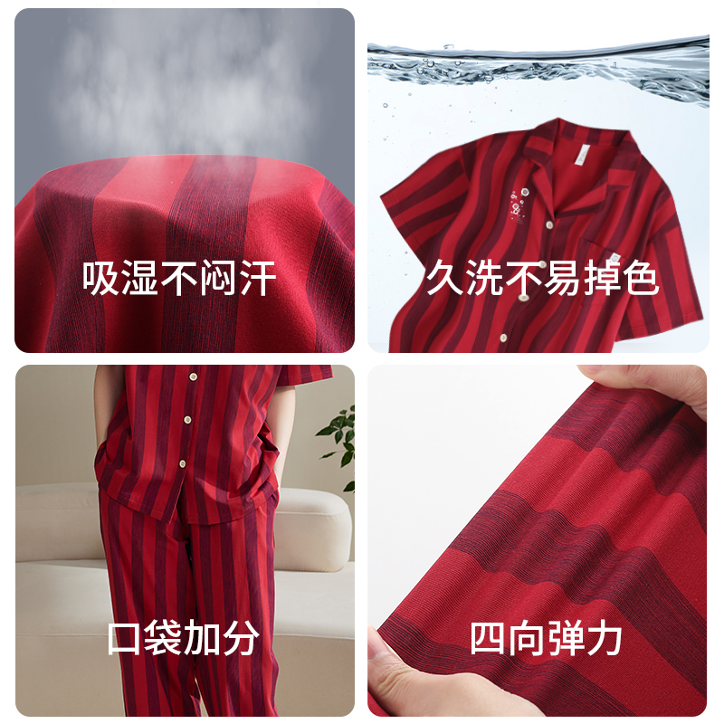 套装 结婚新婚本命年家居服男士 纯棉长袖 轩靓情侣红色睡衣女春秋季