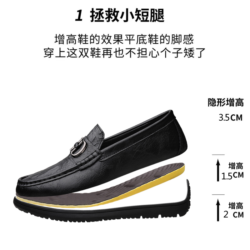 男鞋 乐福鞋 秋冬季 一脚蹬男士 加绒内增高端真牛皮鞋 公牛世家豆豆鞋