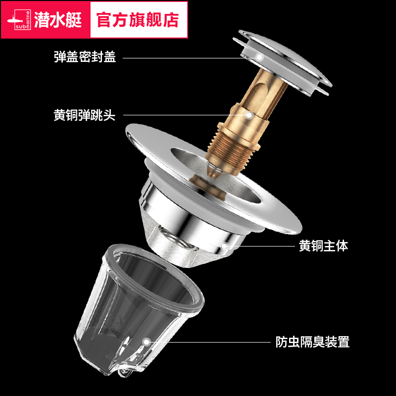 潜水艇面盆卫生间洗脸池洗手盆漏水塞子弹跳塞芯通用下水器按压式