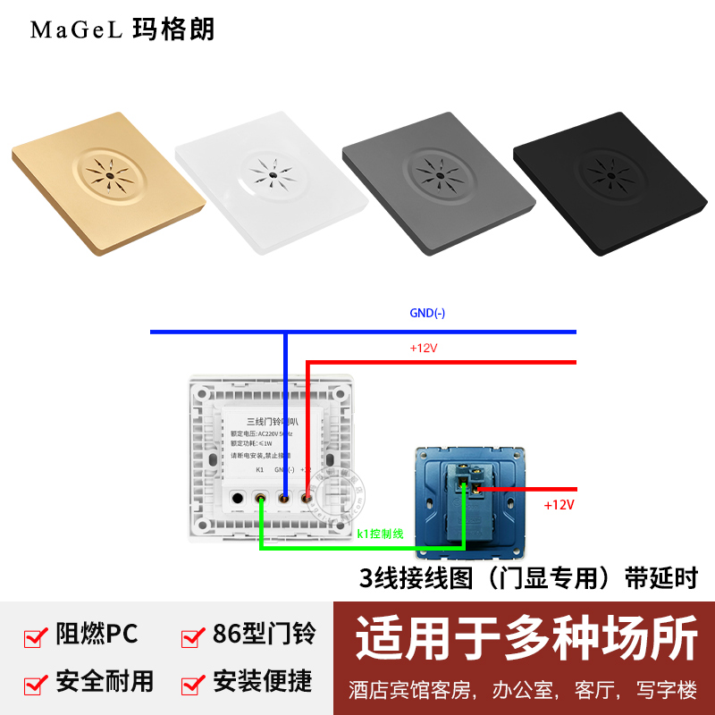 86型弱电12V暗装 叮咚门铃喇叭二三四线酒店宾馆勿扰开关门铃面板