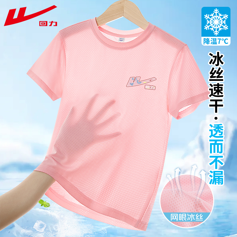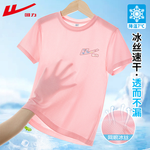 中大童冰丝速干薄款 回力童装 新款 t恤2025夏季 儿童上衣PC 女童短袖