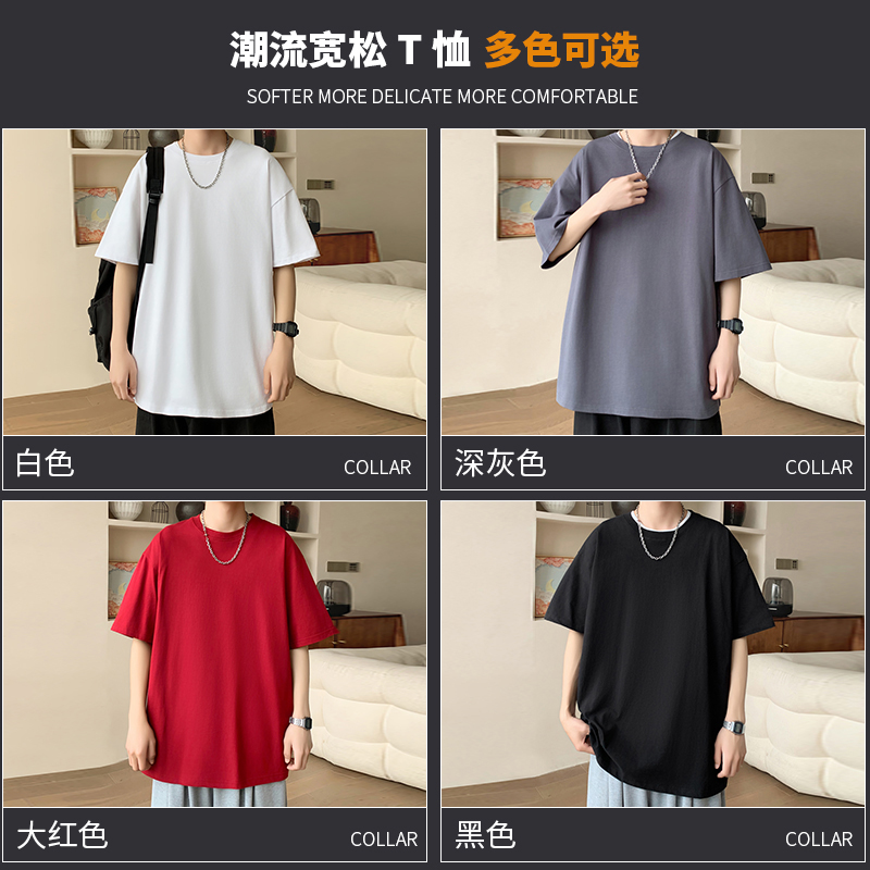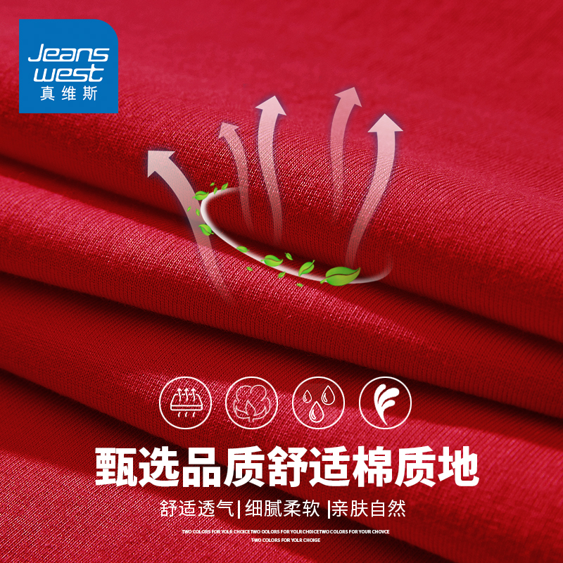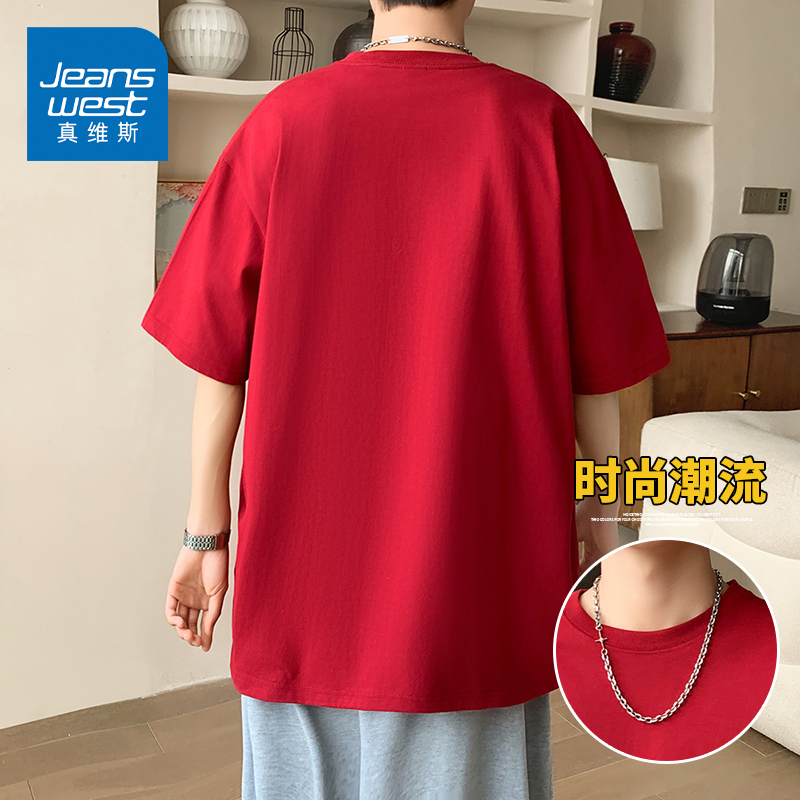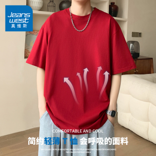 宽松百搭打底衫 新款 潮流透气休闲上衣 T恤男夏季 KZH真维斯红色短袖