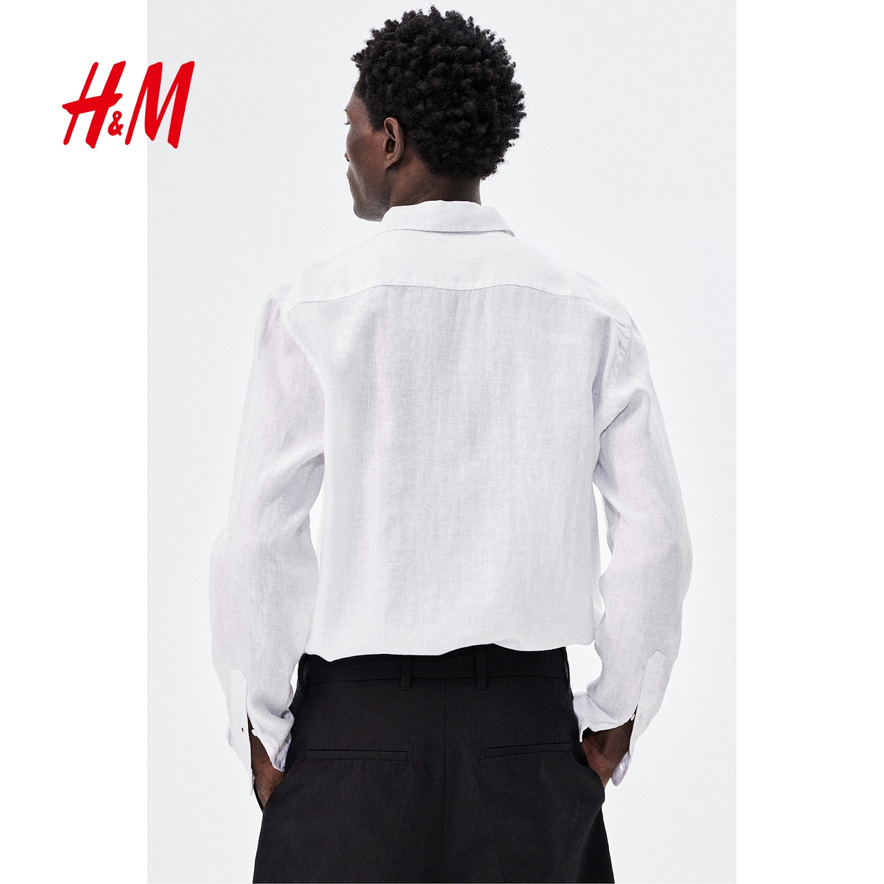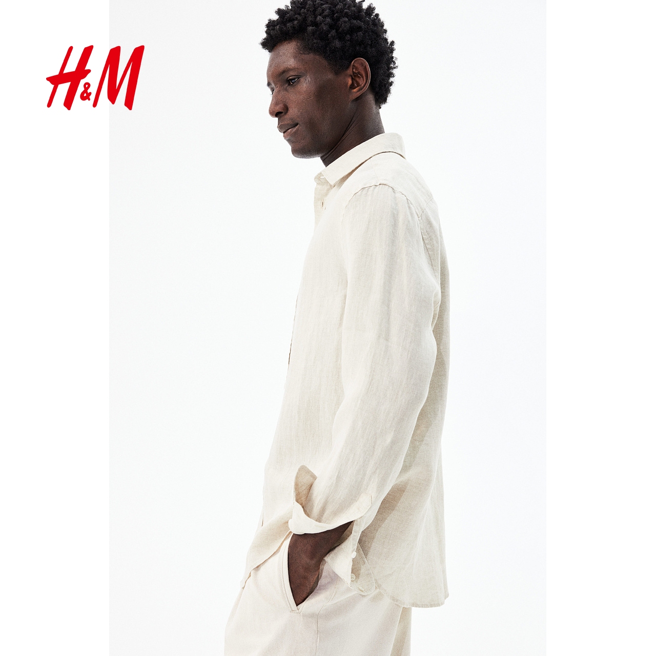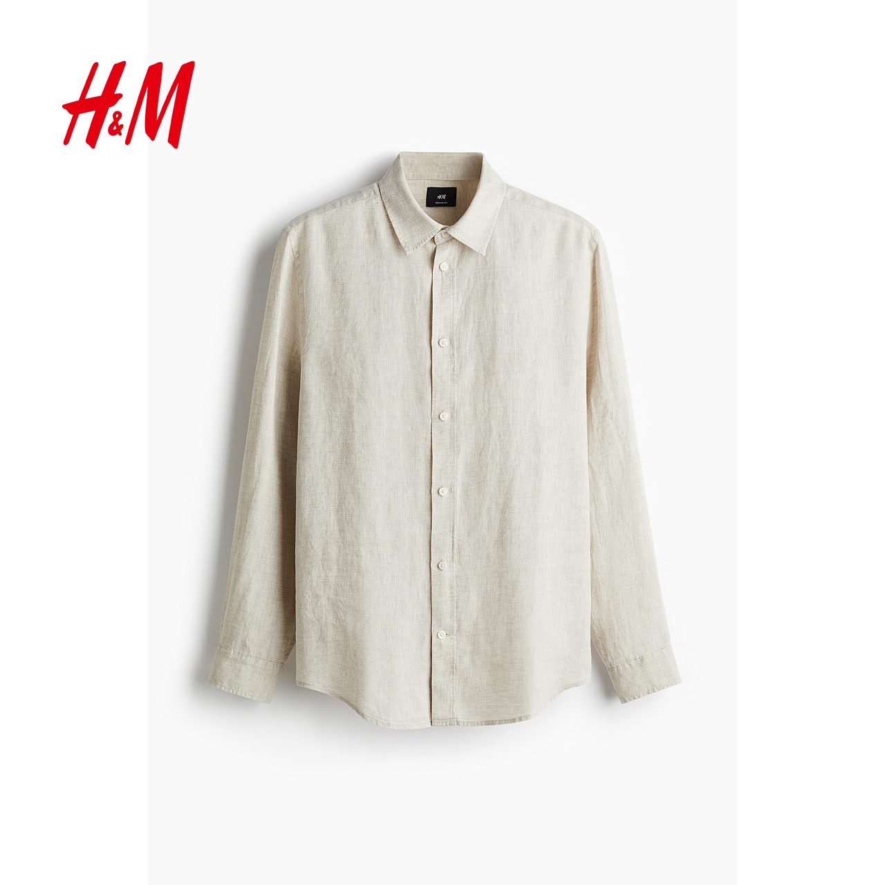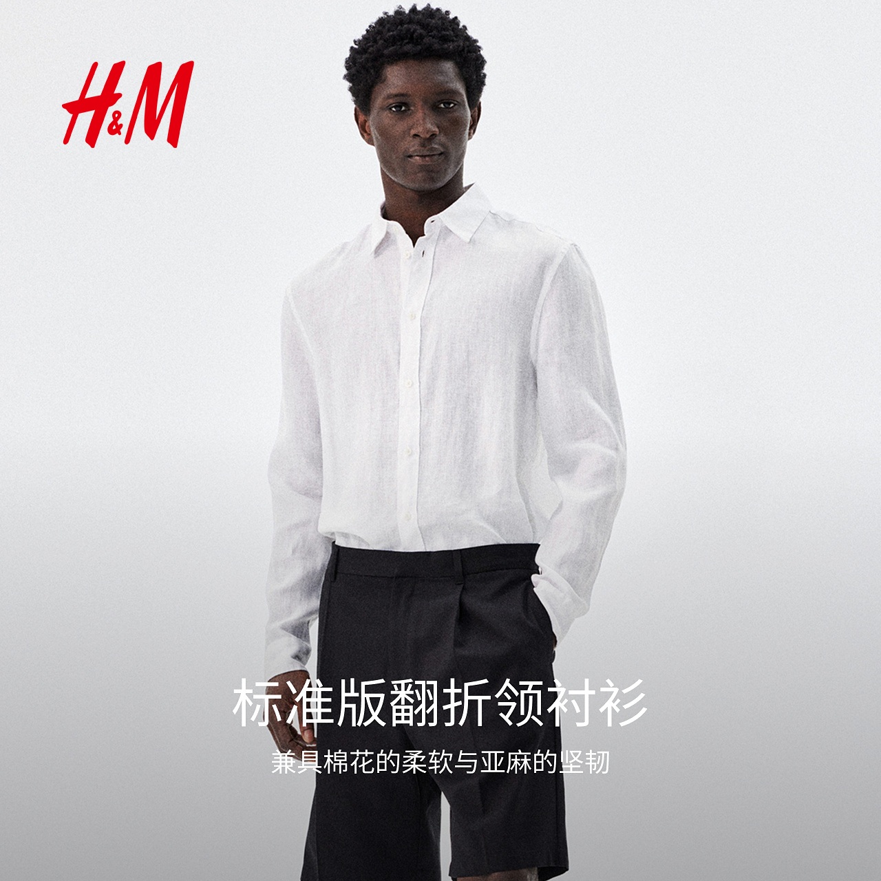 新款 2025秋季 长袖 翻领柔软标准版 1258318 HM男装 型亚麻衬衫 衬衫