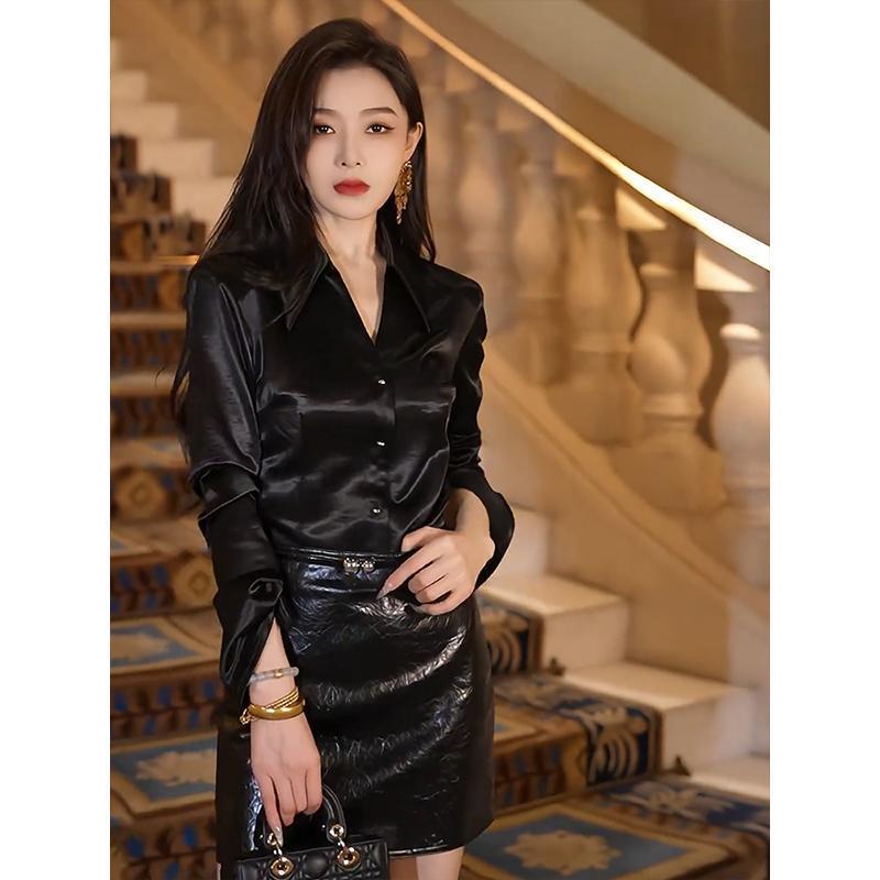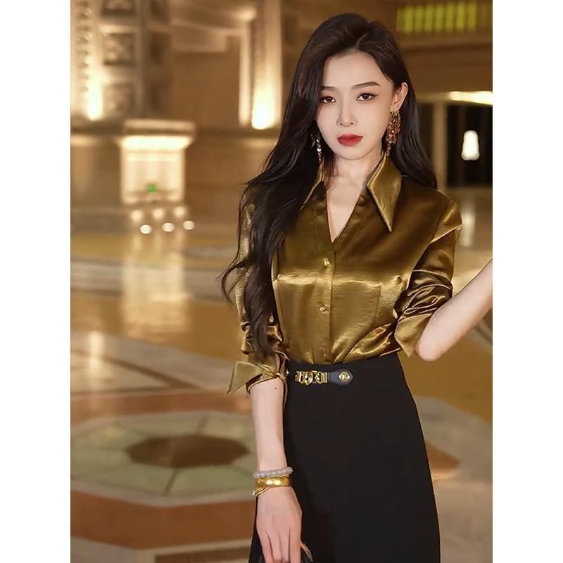 女2025秋季 衬衫 设计感气质通勤衬衣垂感职业上衣 V领白色长袖 法式