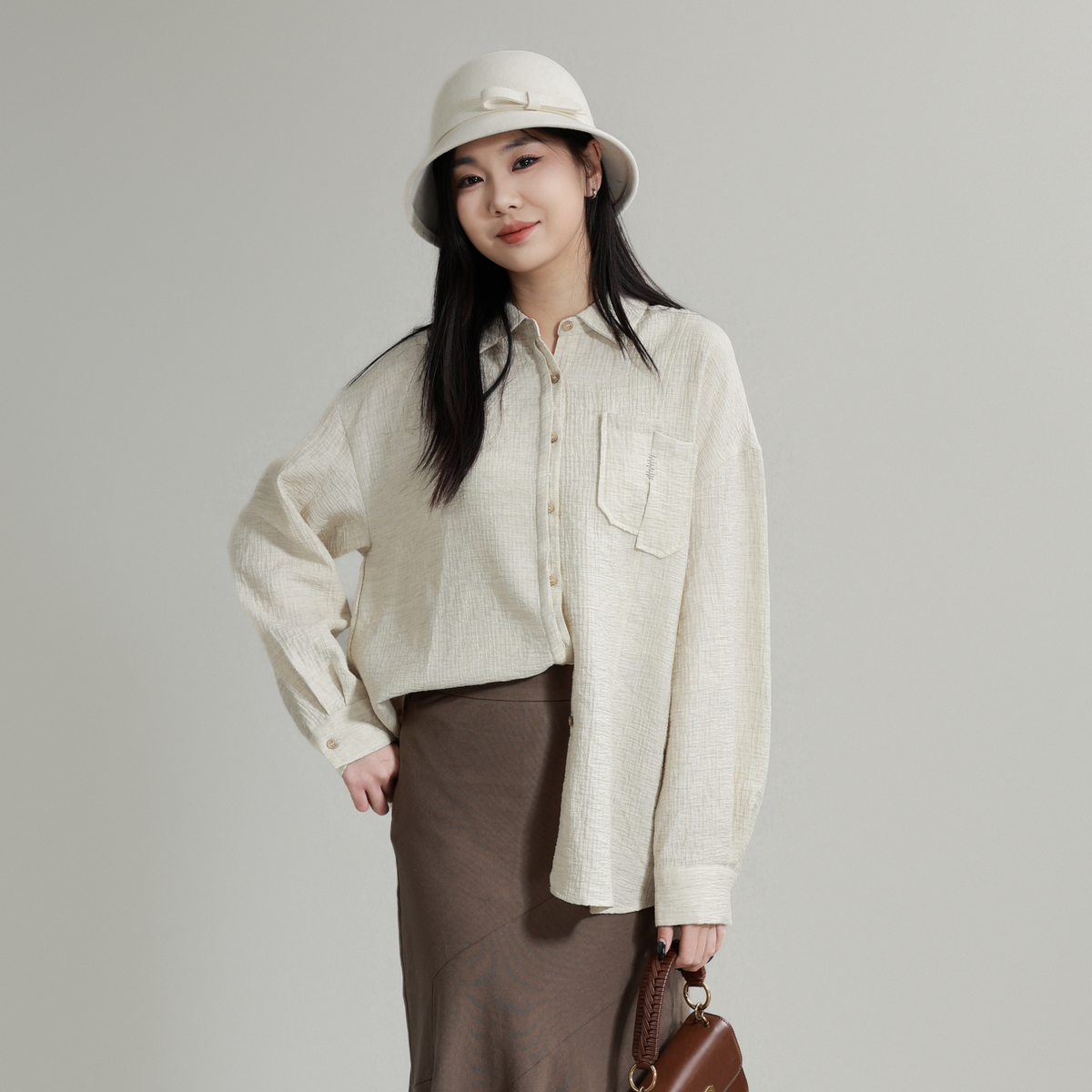 衬衫 西町村屋绣花肌理感衬衣女装 休闲百搭长袖 新款 HA9103003 春季