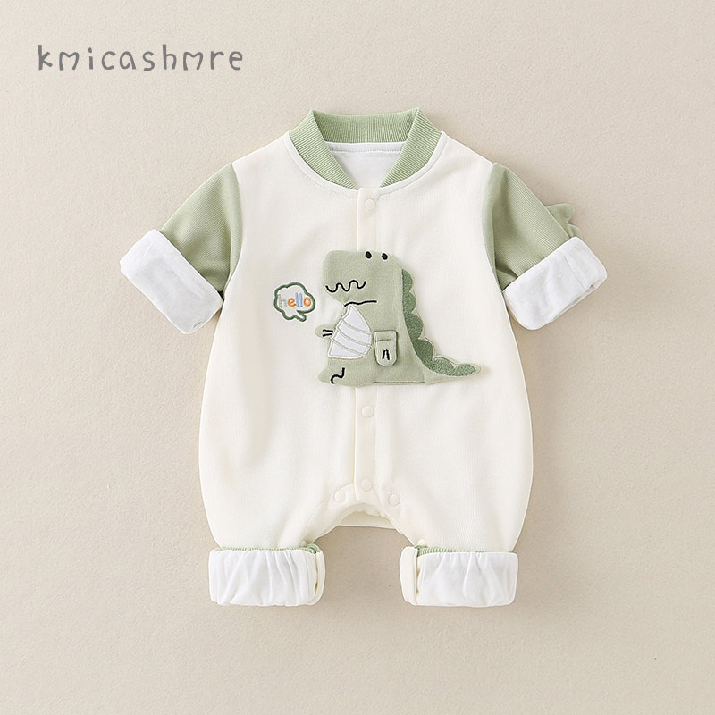 kmi婴儿衣服春装 外出爬服 外套男宝宝连体衣满月百天哈衣春季