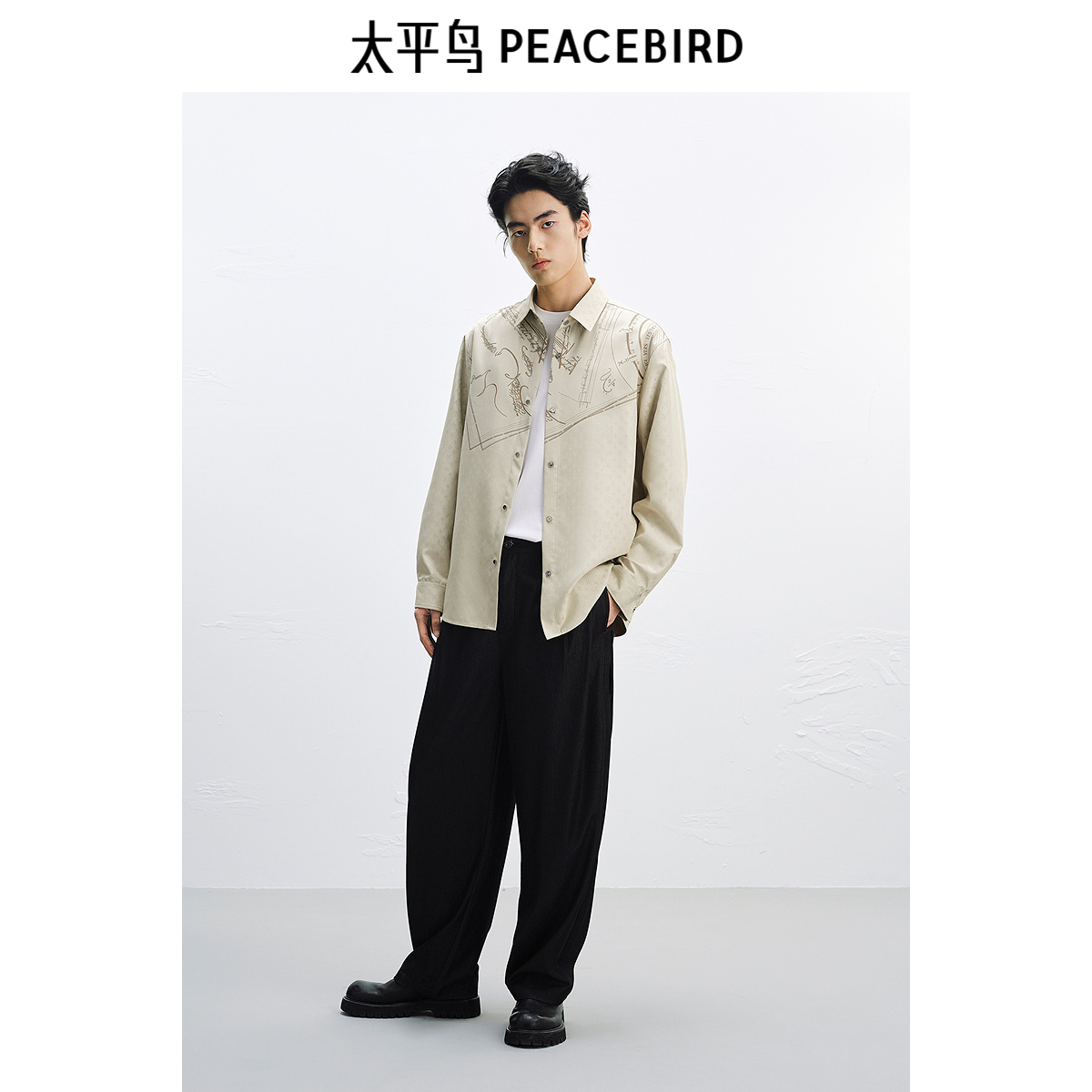 25秋新花纹刺绣上衣男装 海澜之家山不在高纯棉牛津纺长袖 休闲衬衫