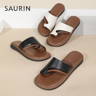 晚风外穿沙滩凉鞋 法式 25BX39312 新款 索兰夹趾一字凉拖女2025夏季