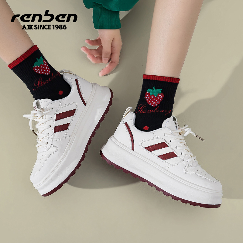 革面保暖厚底时尚 运动鞋 平底鞋 板鞋 子 女款 秋季 女鞋 特步男鞋 休闲鞋