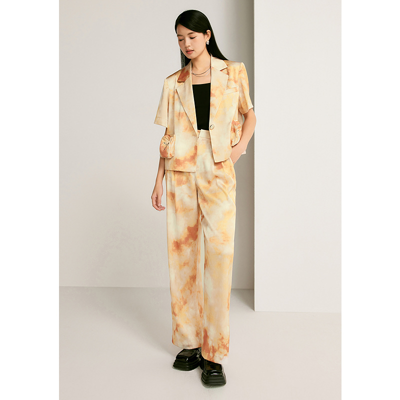 两件套套装 EF法式 晕染宽松长裤 新款 复古休闲气质外套2025夏季