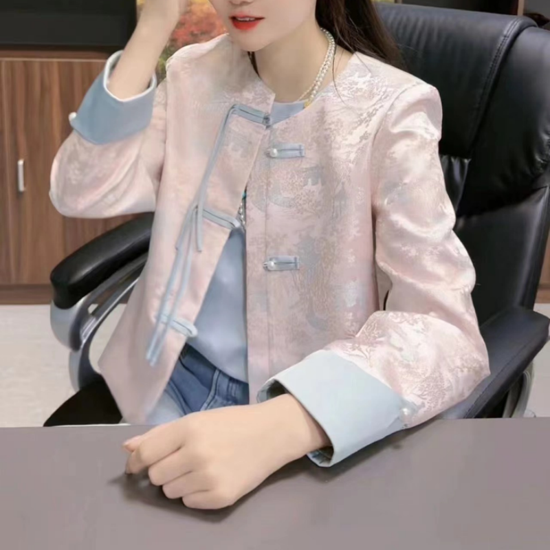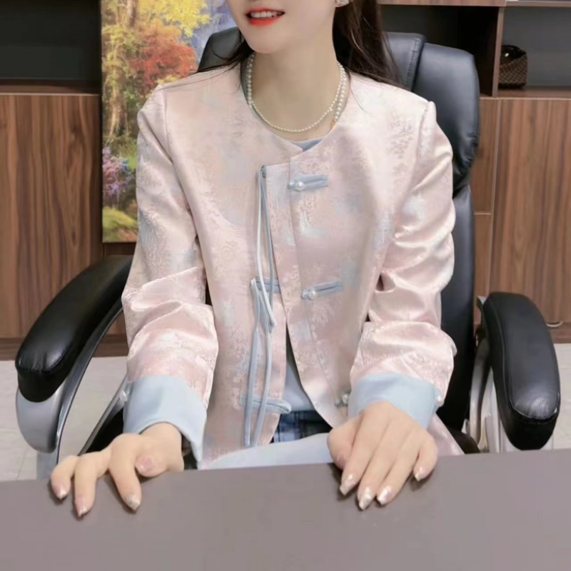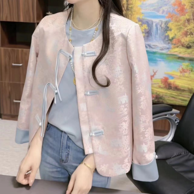 轻国风粉色盘扣气质上衣外套 今年流行漂亮新中式 爆款 春款