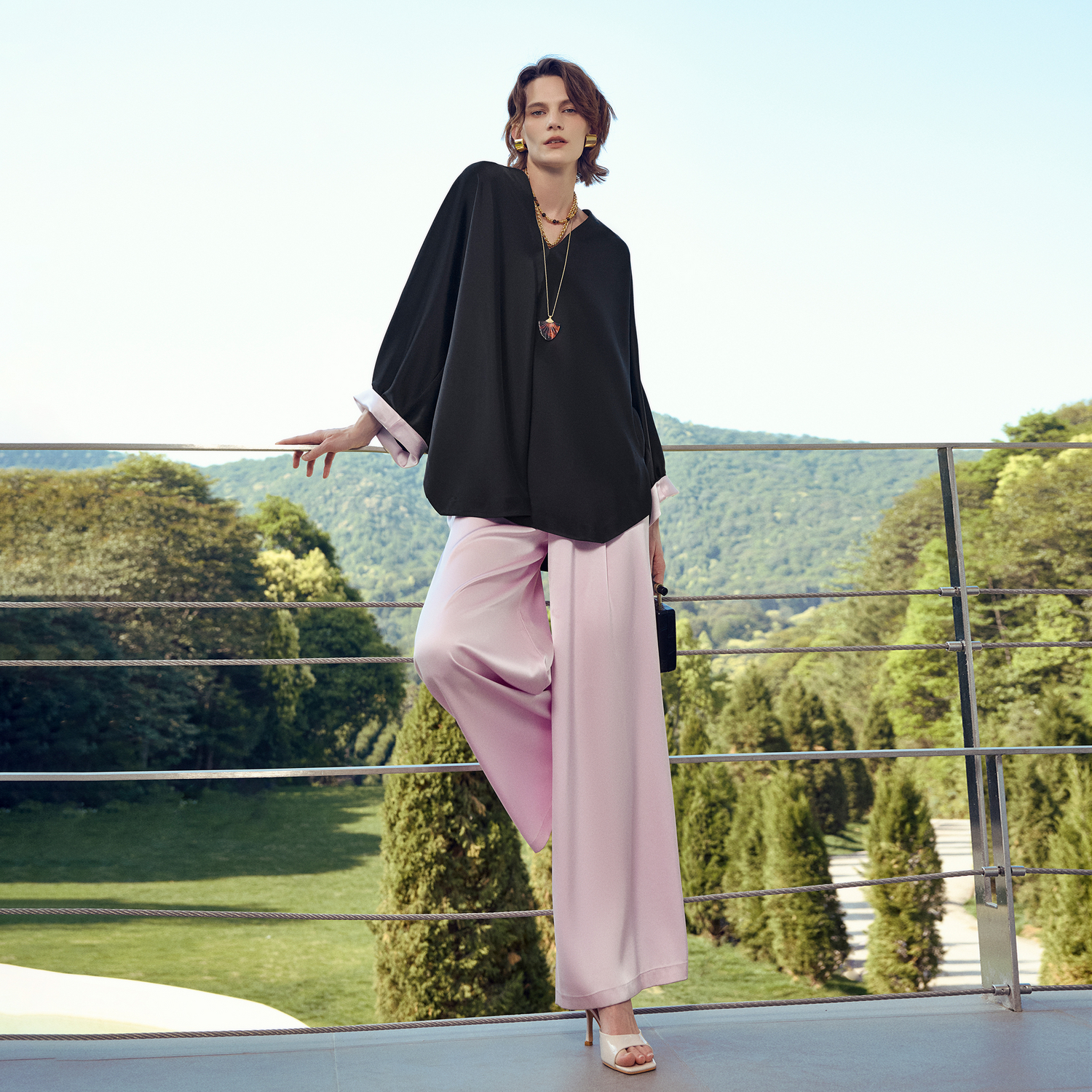 休闲长裤 TU女装 2025年秋季 淡人穿搭三醋酸高腰阔腿裤 子 樱花绮梦