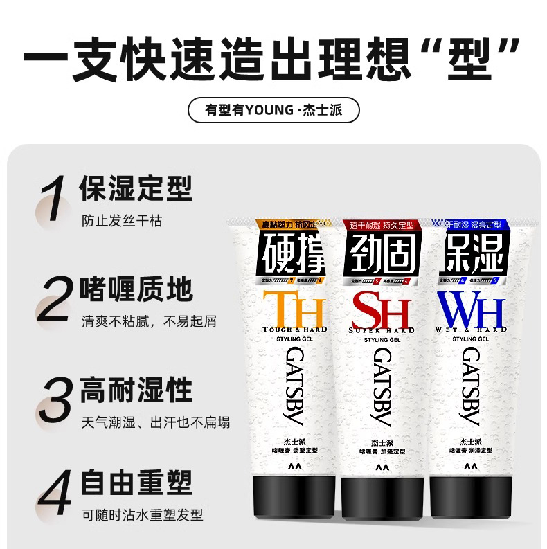 碎发整理背头蓬松 杰士派啫喱膏加强定型200g 自营