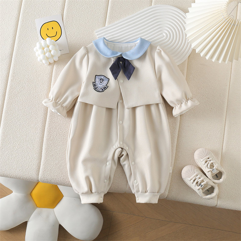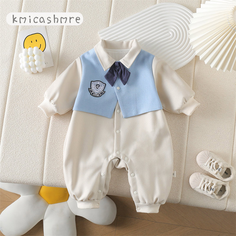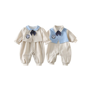 kmi婴儿衣服春装 男女宝宝连体衣哈衣新生儿满月百天外出服包屁衣