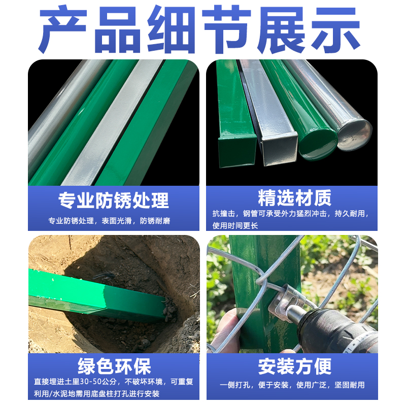 镀锌加厚钢管铁丝网围栏网立柱防锈勾花网加厚立柱养殖牛羊户外网