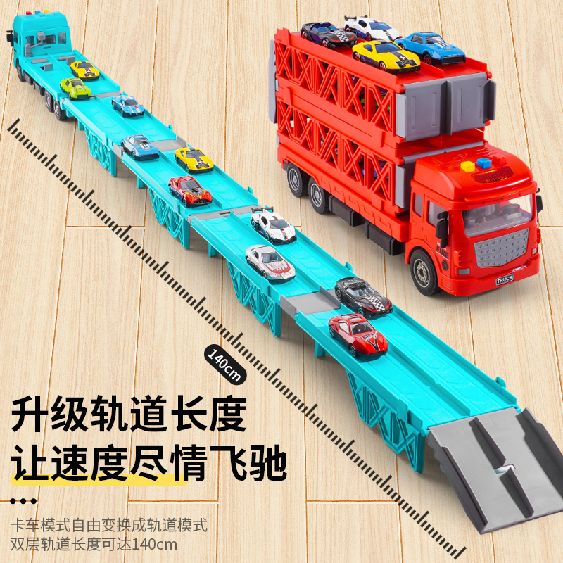 儿童益智合金收纳货柜工程车玩具男孩3岁变形大卡车轨道弹射汽车6