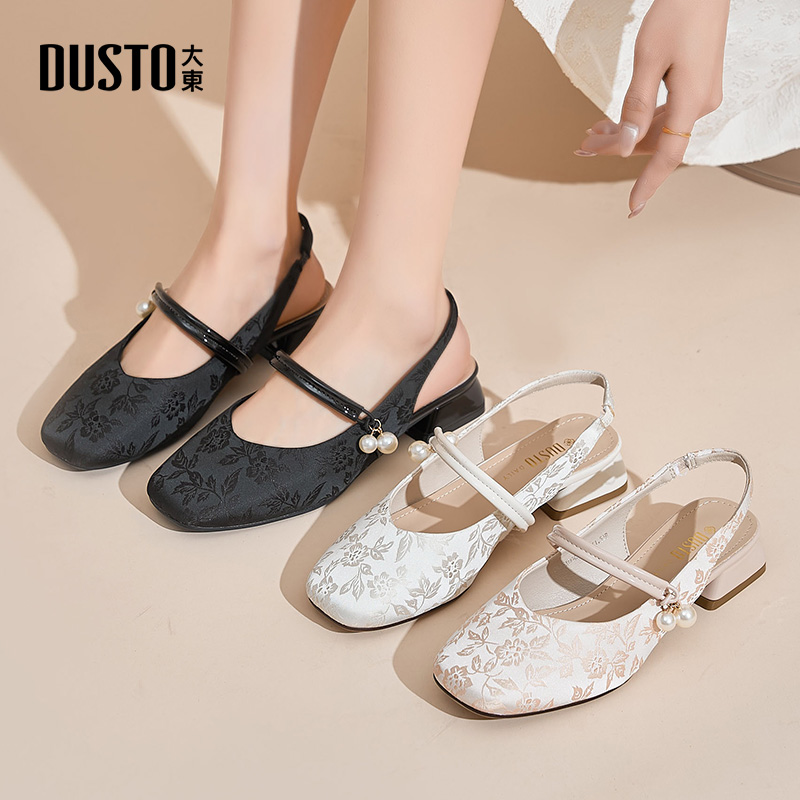 女鞋 鞋 2025夏季 甜美粗中跟珍珠新中式 0042 新款 〖WP〗大东后空凉鞋