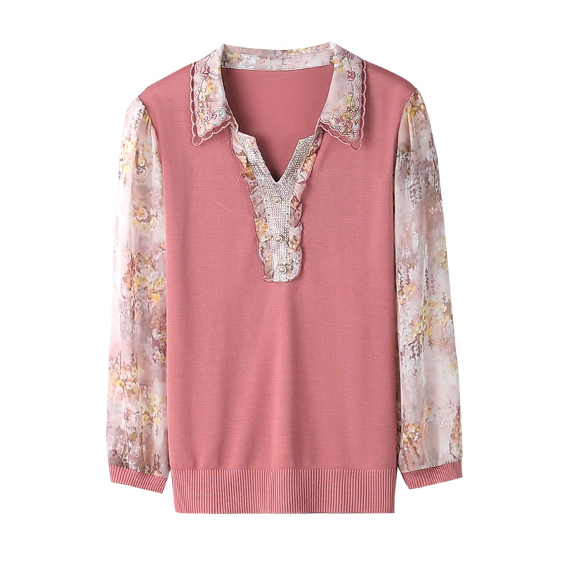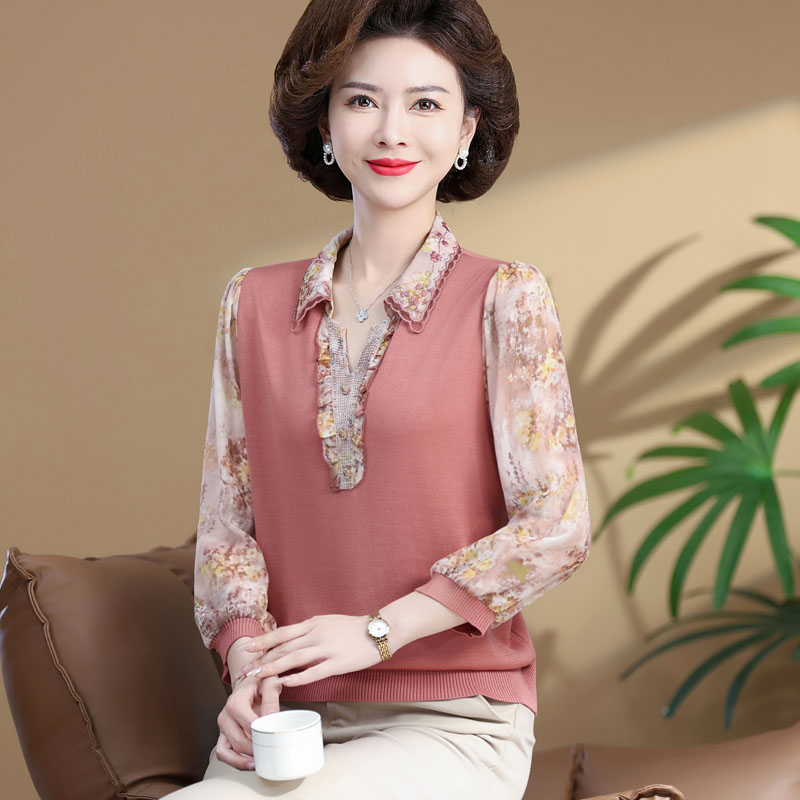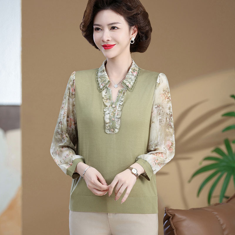 上衣服 中老年人女春秋气质纱袖 妈妈春季 针织t恤洋气套母亲节新款