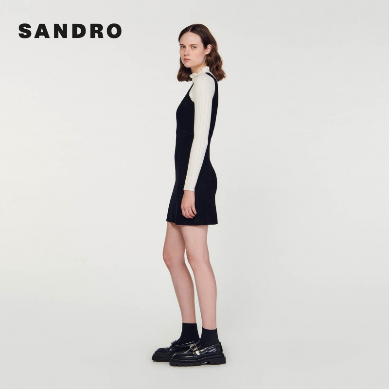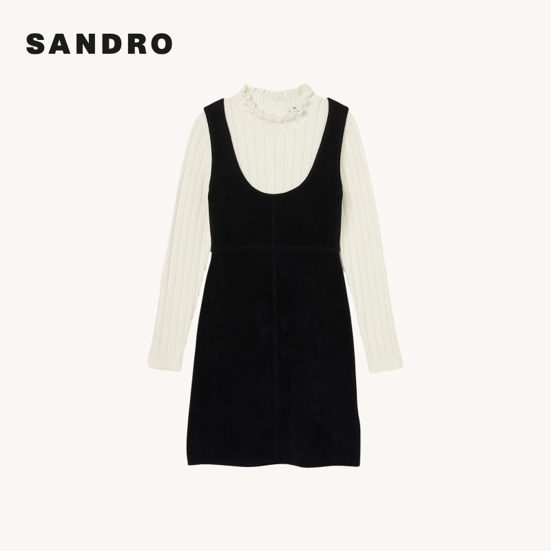OCHIRLY欧时力 水溶棉V领针织连衣裙收腰A字软糯肌理感秋冬尖货