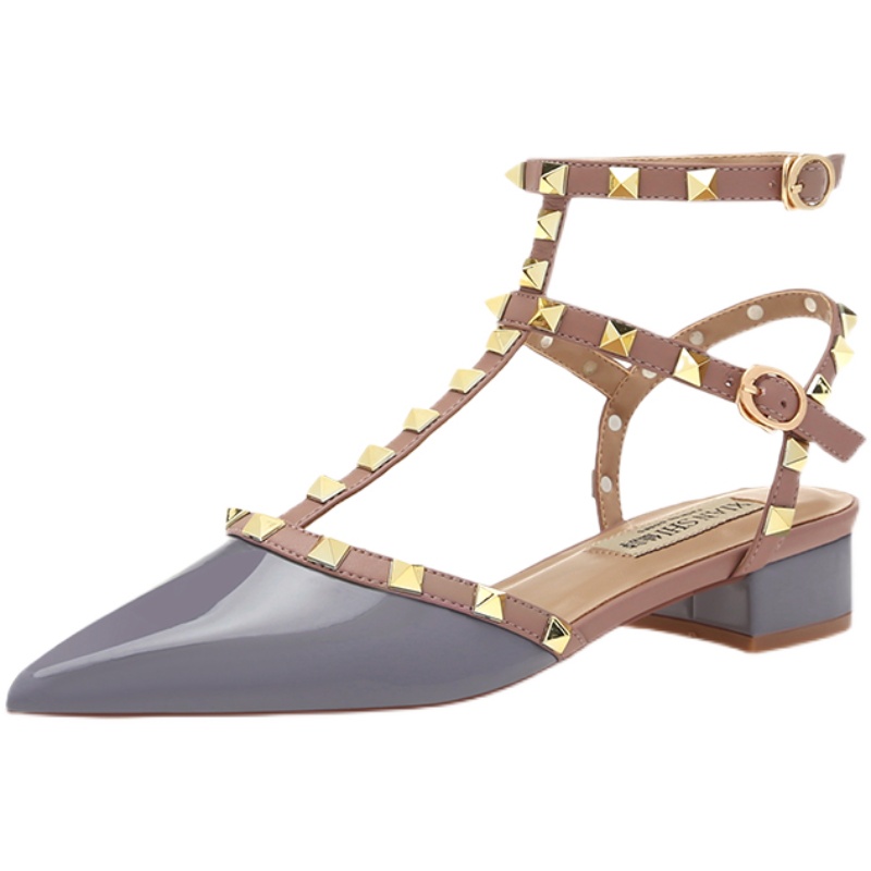 百搭玛丽珍一字带柳丁凉鞋 新款 女2025春夏季 铆钉尖头平底低跟单鞋