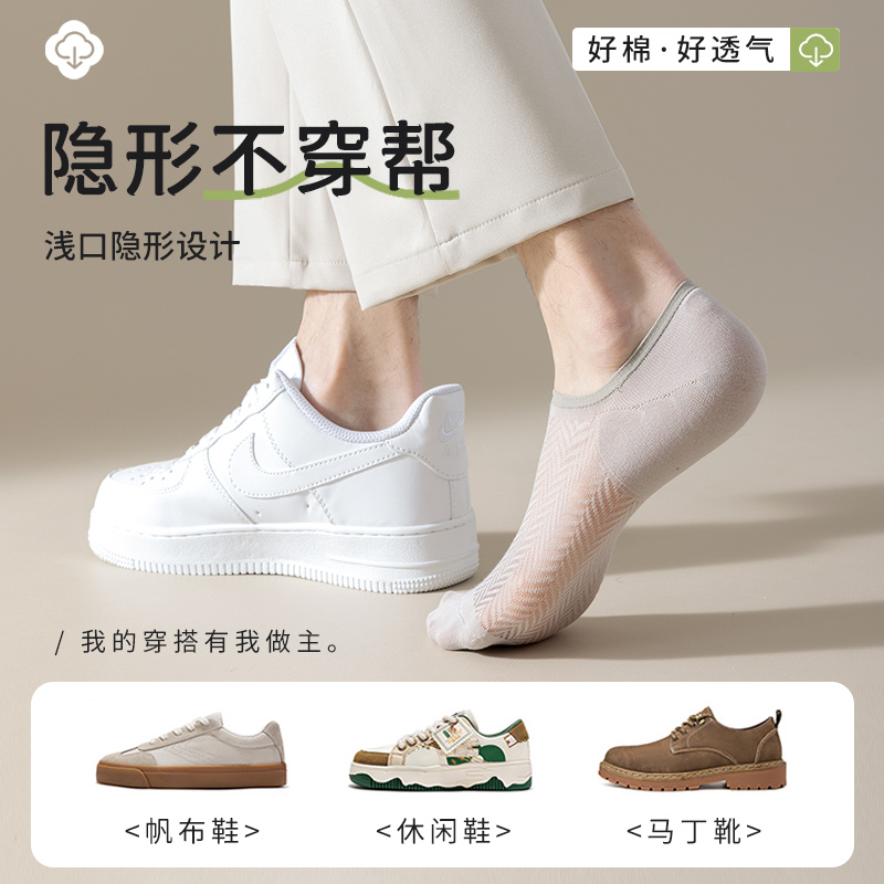 男士 薄款 中筒运动透气吸汗防臭防脚气短筒船袜 夏季 一只鱼袜子男款