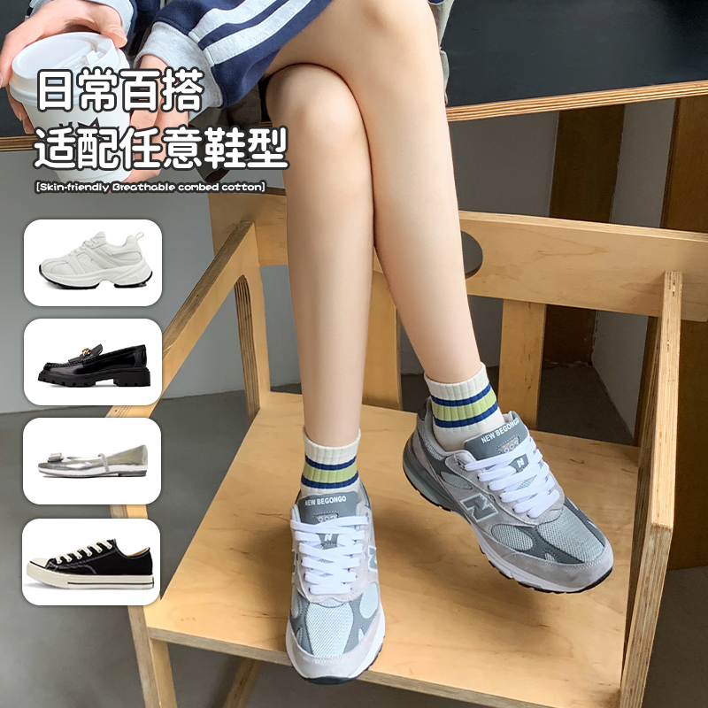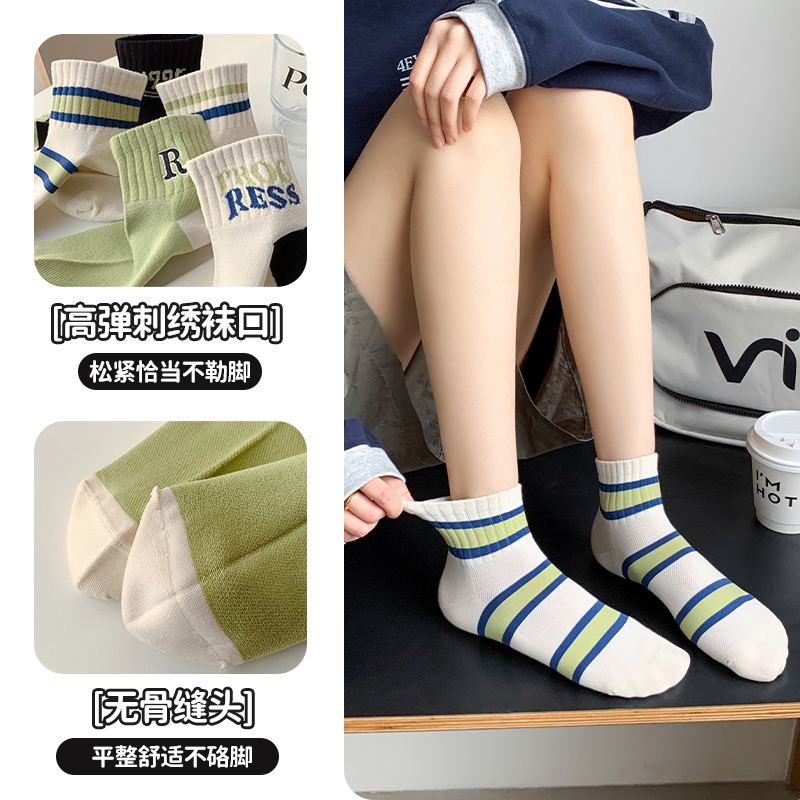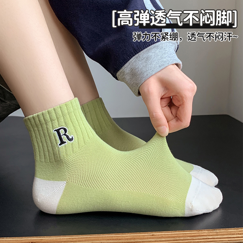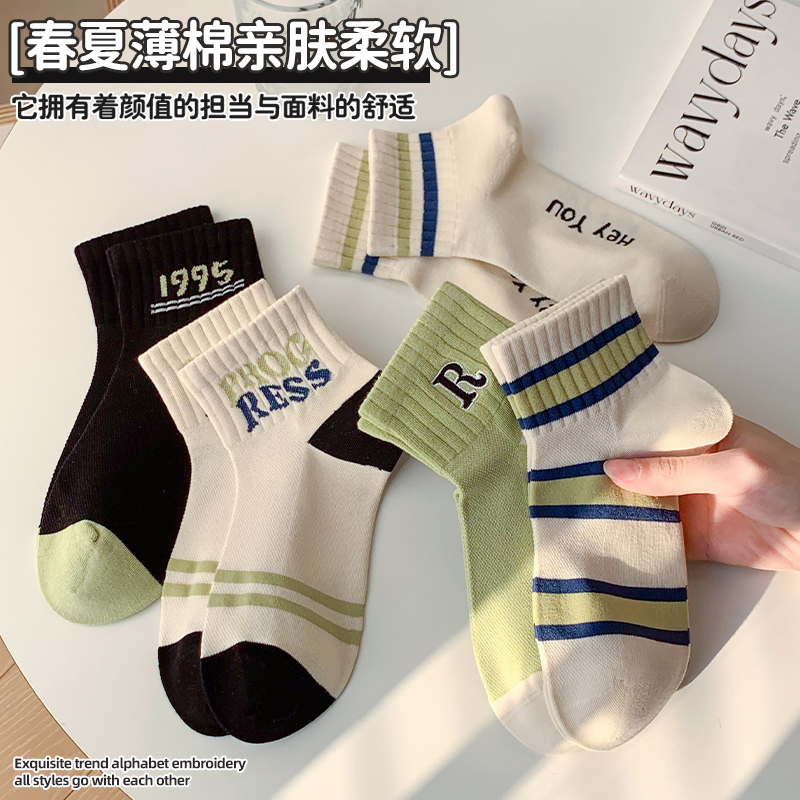 字母刺绣学生短袜 ins潮运动美式 袜子女春夏款 棉袜短筒袜网眼薄款