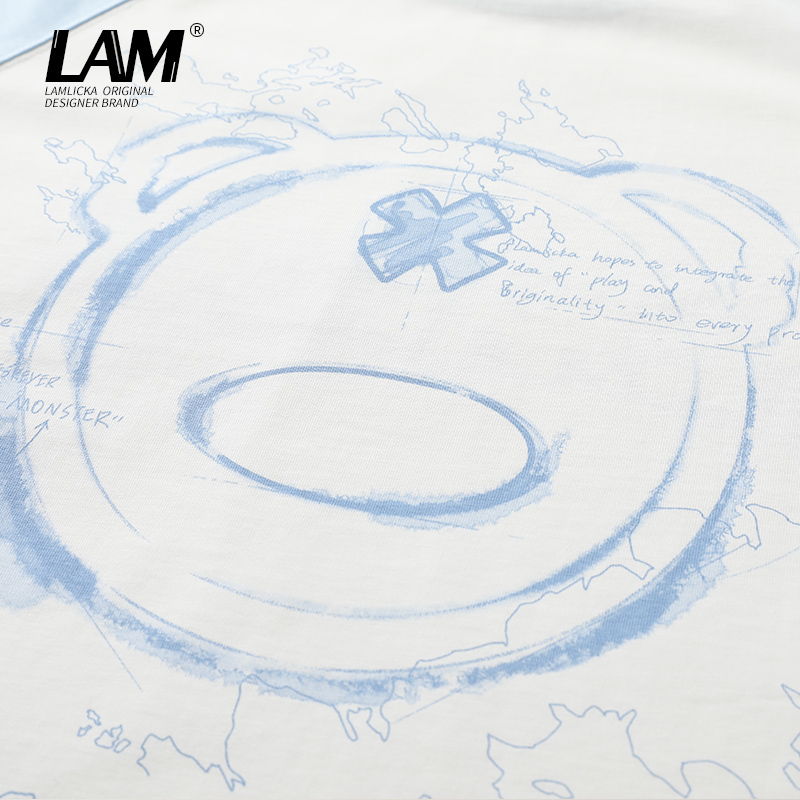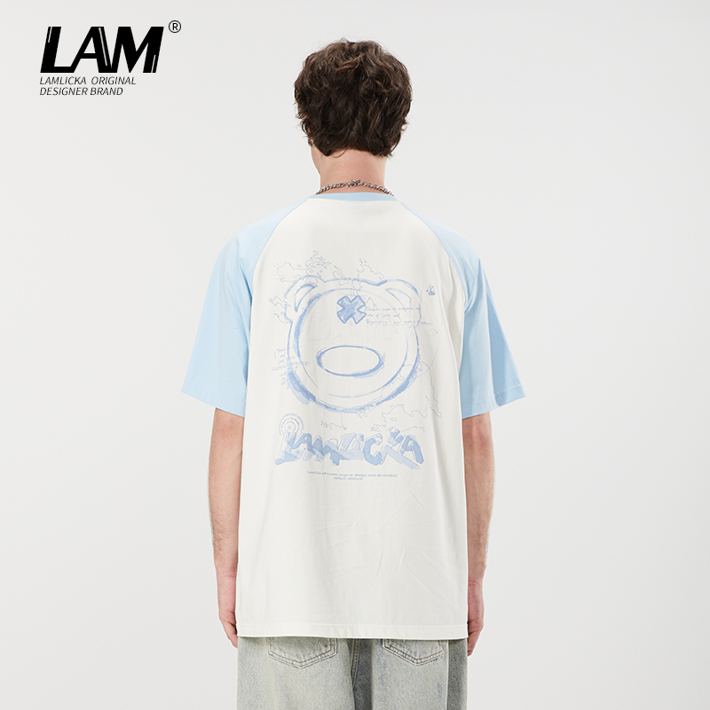 半袖 宽松休闲T恤oversize美式 潮男 插肩拼接撞色短袖 LAMLICKA夏季