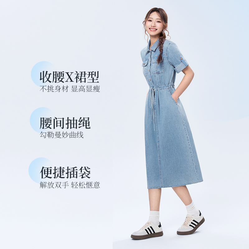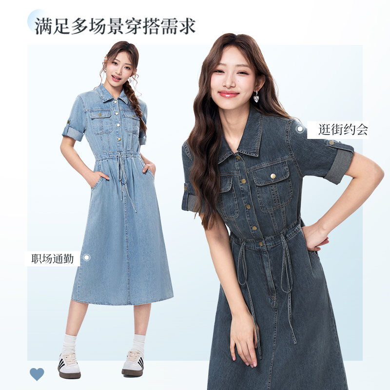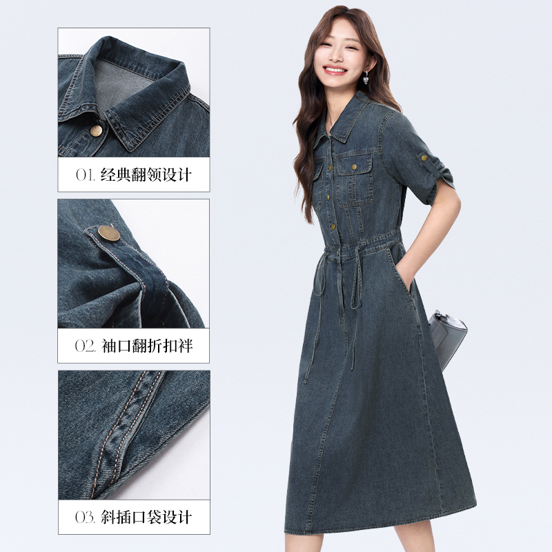 EF复古港风牛仔连衣裙气质通勤休闲短袖 a字裙