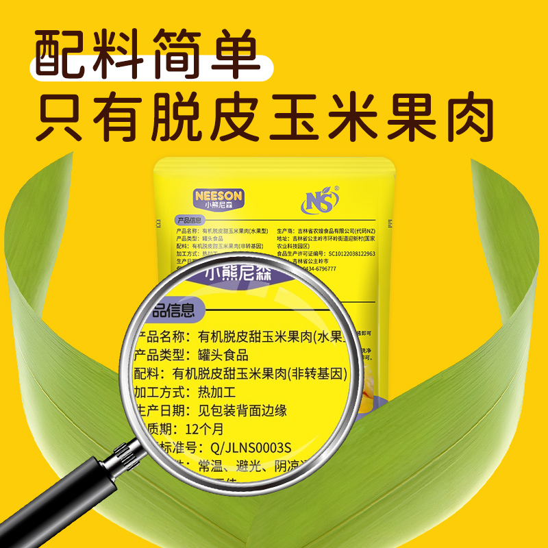 有机脱皮玉米粒60g 10袋水果甜玉米粒去皮即食无皮送宝宝辅食谱