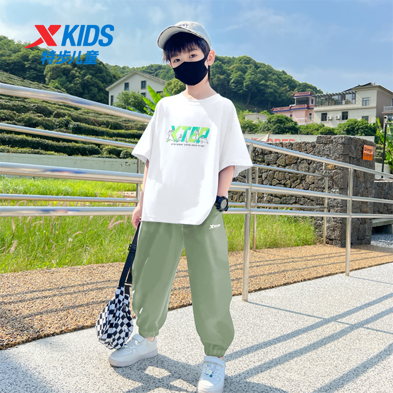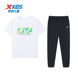 2025新款 套装 儿童速干运动服短袖 长裤 特步童装 学生夏装 男大童秋季