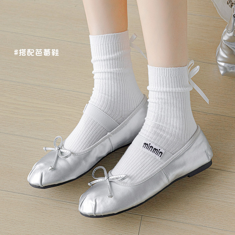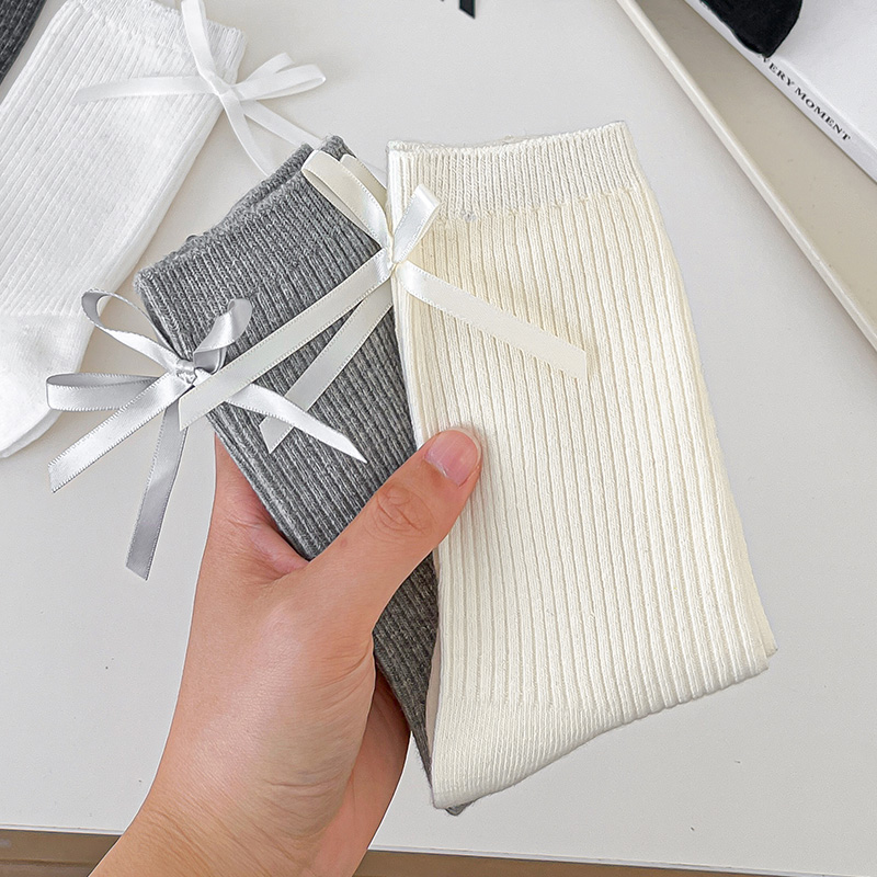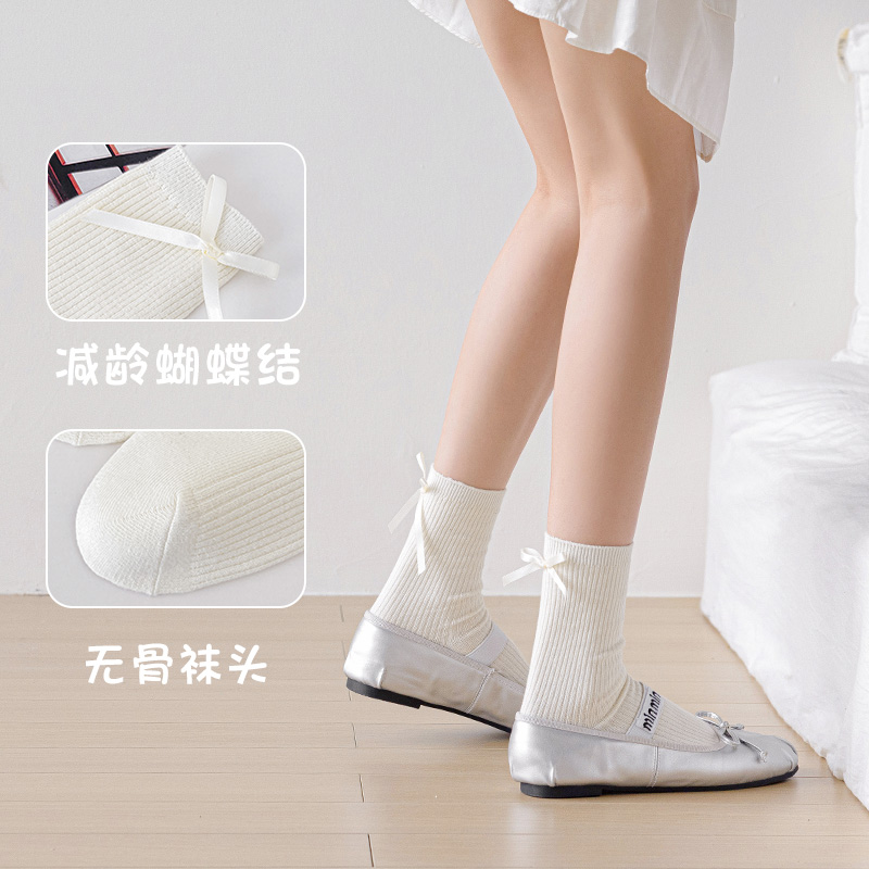 长袜配小皮鞋 蝴蝶结袜子女春秋纯棉中筒袜无骨日系jk花边夏季 薄款