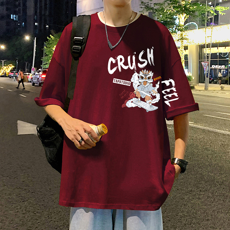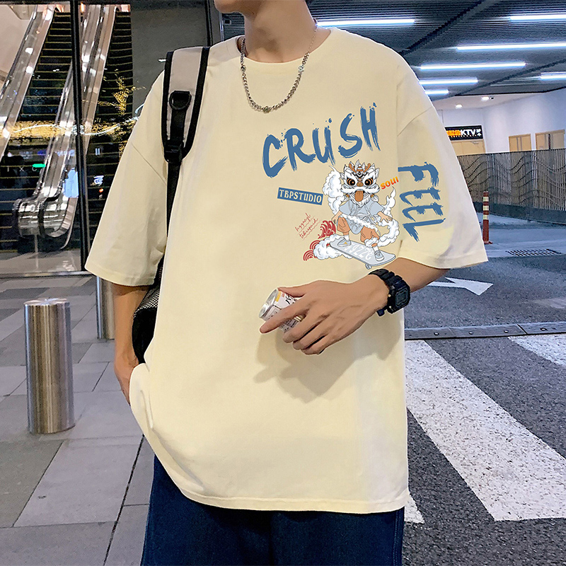 ins潮牌宽松国潮半袖 2025新款 重磅纯棉体恤 t恤男夏季 醒狮港风短袖