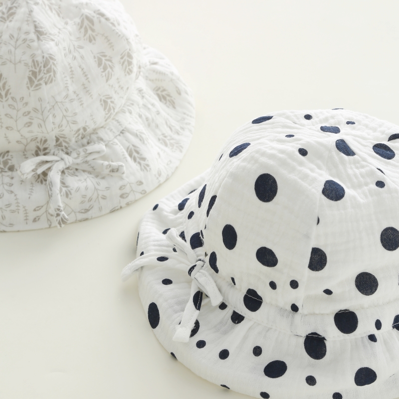 清仓 婴儿纯棉纱布遮阳帽日系防晒女童可调渔夫帽新生宝宝ins薄款