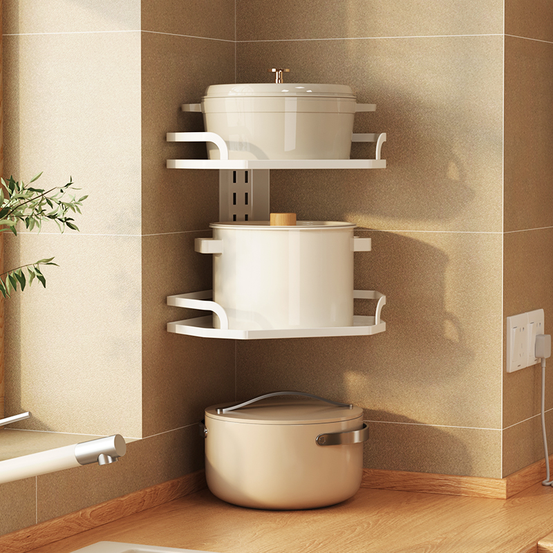 锅架壁挂可调节三角厨房家用多层置物架转角竖放挂墙锅具收纳架子