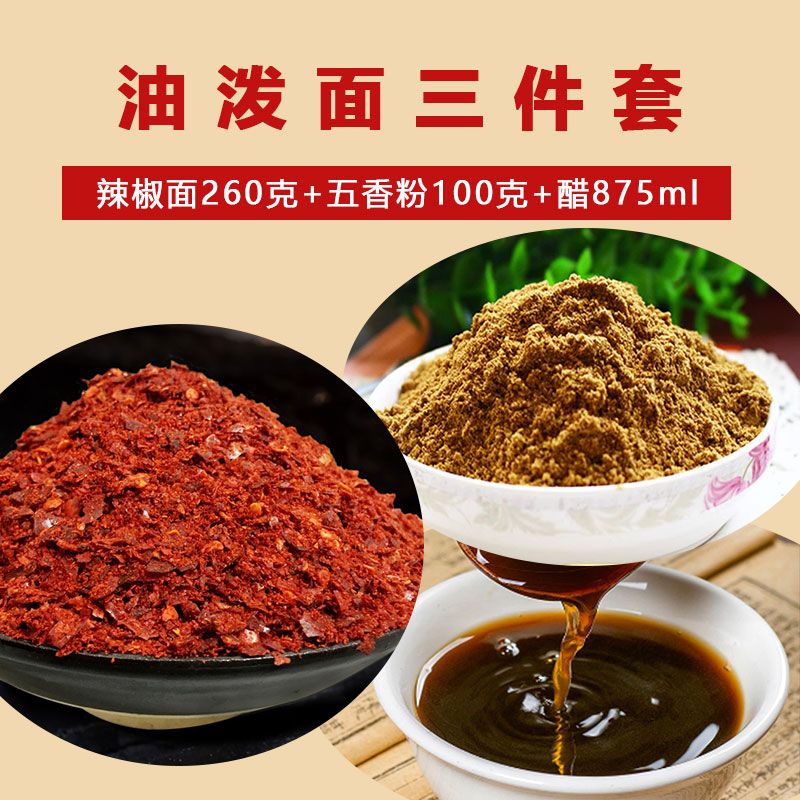 陕西油泼辣子 秦椒粉香料凉皮辣椒油香辣油泼面三件套特产 辣椒面
